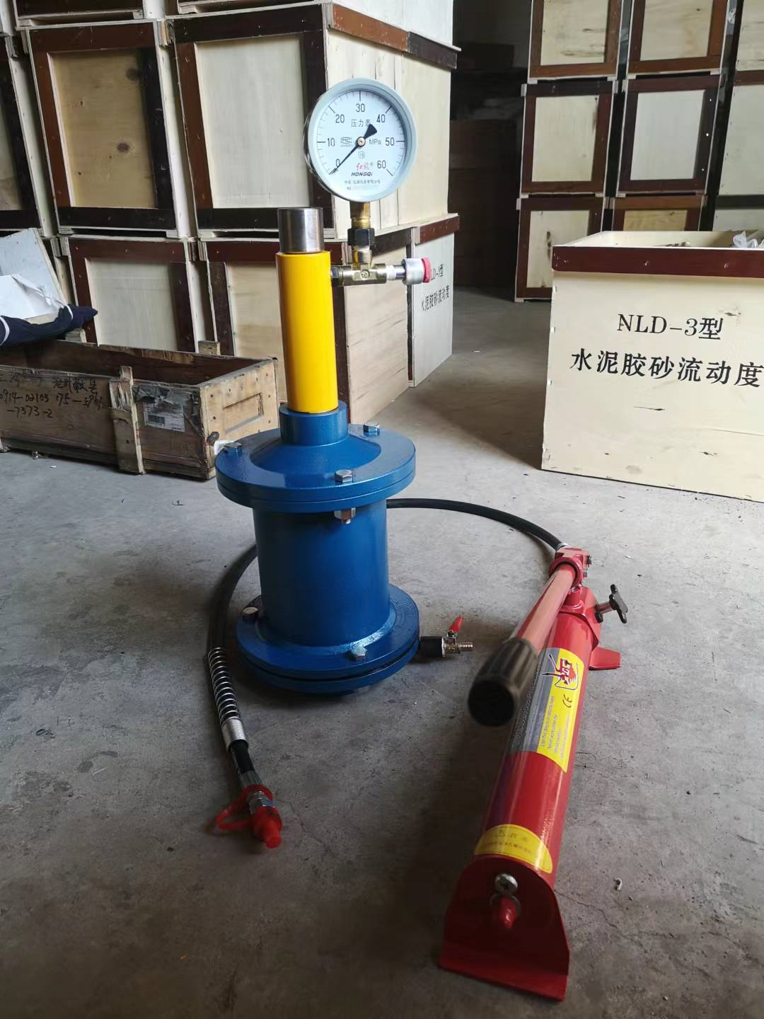 5、取得數(shù)據(jù)后,按逆時(shí)針方向擰松回油閥,使系統(tǒng)卸壓,取下上蓋和試料筒,將試料筒安放在脫模器(隨機(jī)附件)上,蓋好上蓋,擰緊三個(gè)螺母。在按順時(shí)針方向擰緊回油閥,給千斤頂加壓至砼及活塞自動(dòng)脫落,拆下上蓋和試料筒,擰松回油閥,人工壓回千斤頂活塞,一次試驗(yàn)結(jié)束。四 混凝土壓力泌水儀維護(hù)與保養(yǎng)1、每次試驗(yàn)結(jié)束后,要將混凝土壓力泌水儀用水沖洗并擦干,如長(zhǎng)期不用,用將無油漆的零件表面涂油防銹。2、在安裝時(shí),試料筒不得倒置,其下端外側(cè)涂少許潤(rùn)滑脂,以使其能與“0”形圈密封。3、如油泵卻油致使壓力上不去,可將油泵后蓋螺栓打開,加入20號(hào)機(jī)油,重新裝好即可。