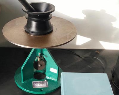 儀器必須用地腳螺栓固定在基座上。儀器基座由客重約為2240Kg/m3的混凝土澆筑而成。地面尺寸為400mm×400mm,高約690mm。在混凝土基座和儀器之間宜填充薄層砂漿以保證其牢固。儀器安裝后,圓盤(pán)在高點(diǎn)和低點(diǎn),其桌面沿彼此成直角的兩個(gè)直徑方向測(cè)量時(shí)均應(yīng)成水平。跳桌安裝好后,采用流動(dòng)度標(biāo)準(zhǔn)樣(JBWO1-1-1)進(jìn)行檢定,測(cè)得標(biāo)樣的流動(dòng)度值如與給定的流動(dòng)度值相差在規(guī)定范圍內(nèi),則該跳桌的使用性能合格。