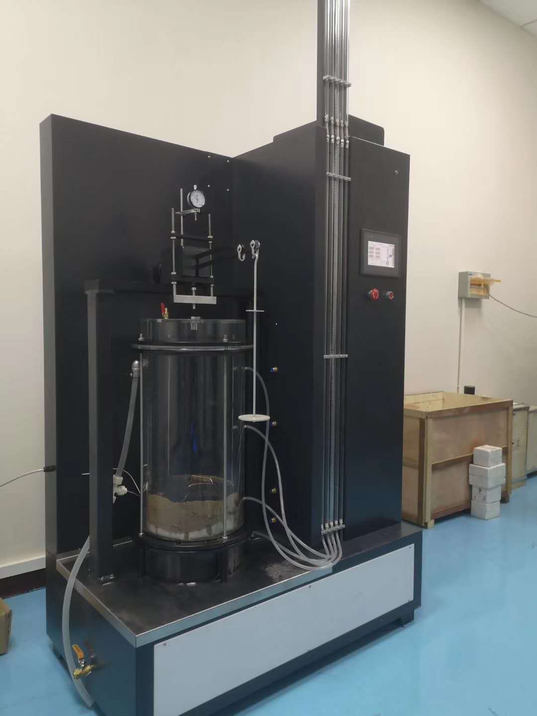 5.待砂漿有**強度后(一般24h),小心地切斷土柱,然后連同筒身運至室內(nèi)。將試樣削平,在試樣下端放置下透水板及斜透水板。接上下進水口,并與供水管連接。